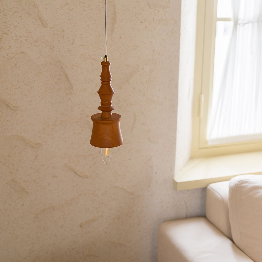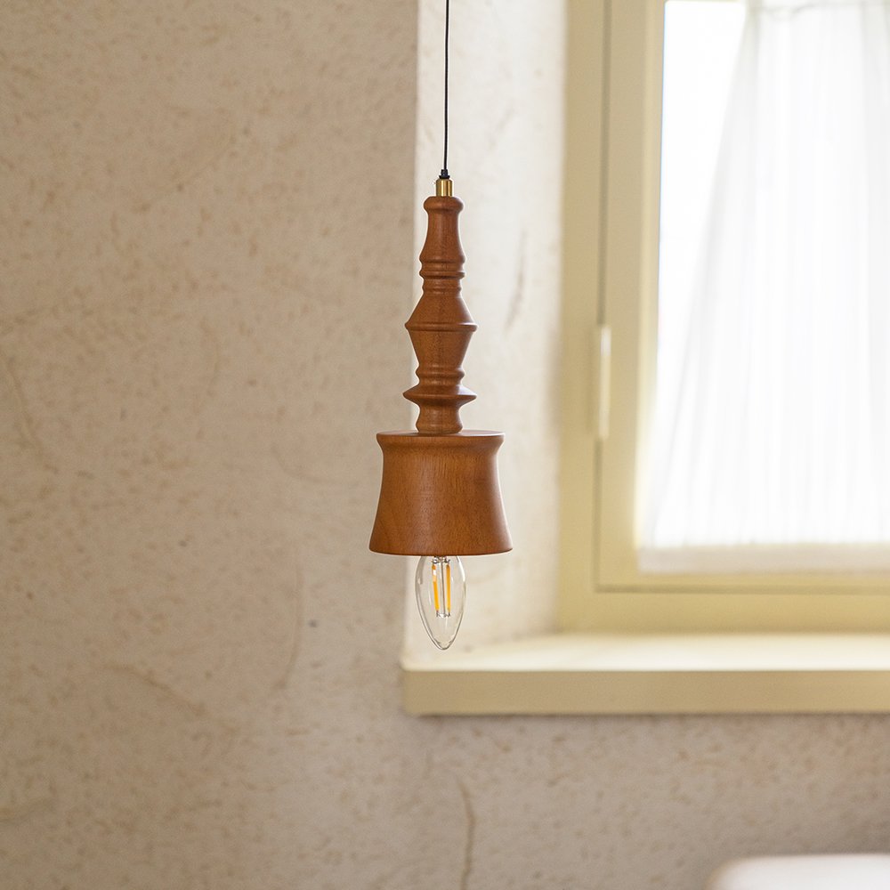 This pendant light features a hand – turned wooden body, combining natural texture with a minimalist form. It’s a perfect blend of rustic charm and modern simplicity for any space.