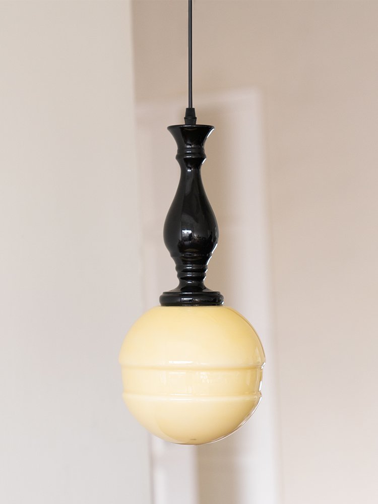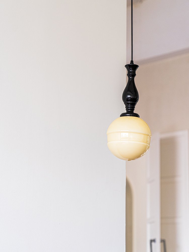 This pendant light combines classic and modern styles. The black fixture contrasts with the creamy – white globe, casting a warm glow. Ideal for adding a touch of elegance to any space.