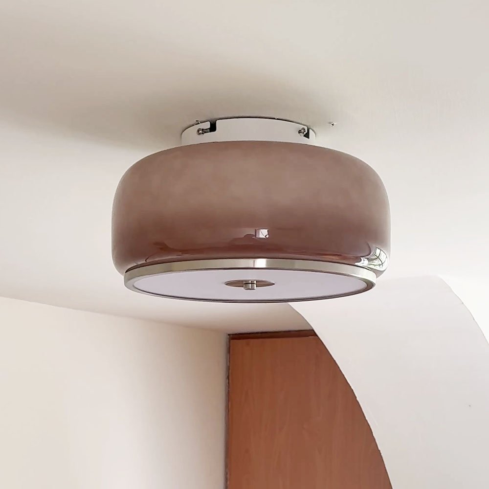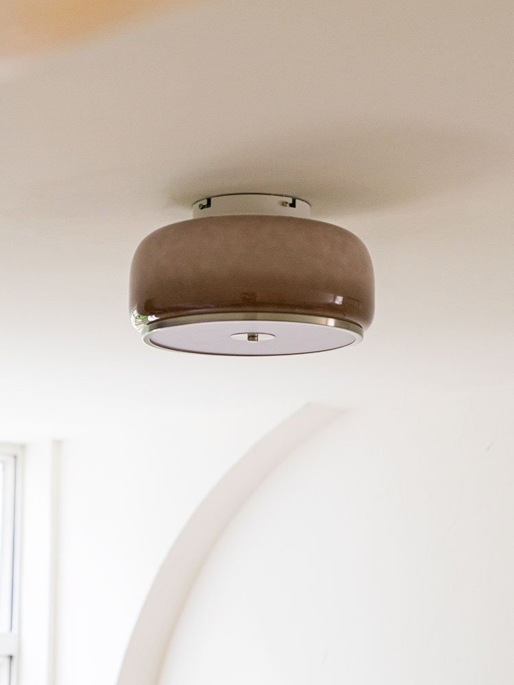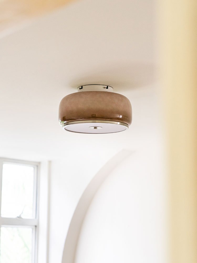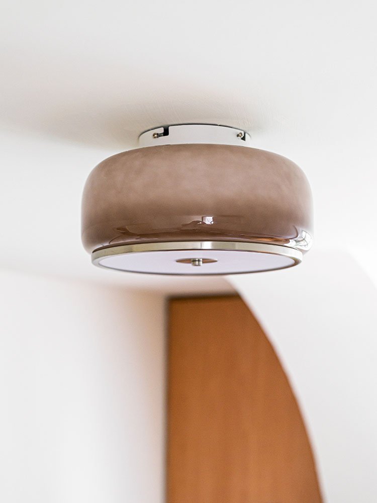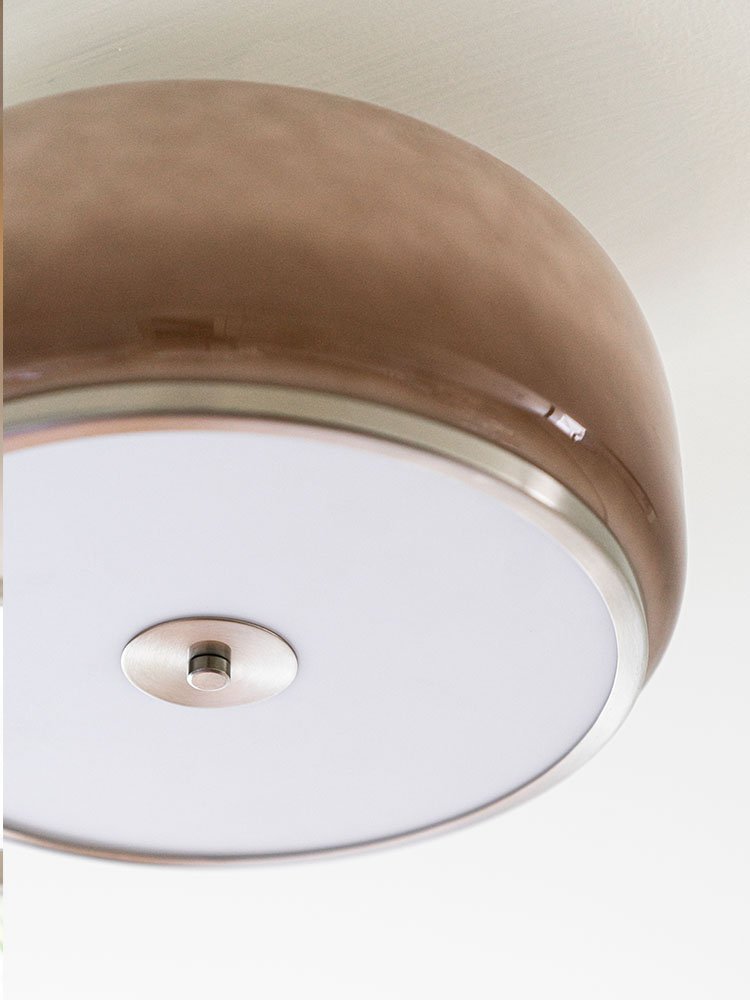 This ceiling light is a perfect blend of style and functionality. Its rounded, earth – toned glass shade exudes a warm and cozy vibe. The sleek metal trim adds a modern touch. Ideal for any room, it lights up your space with elegance.