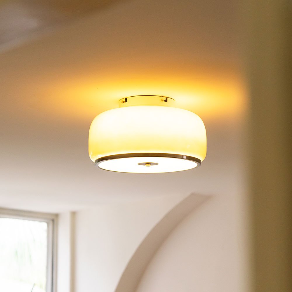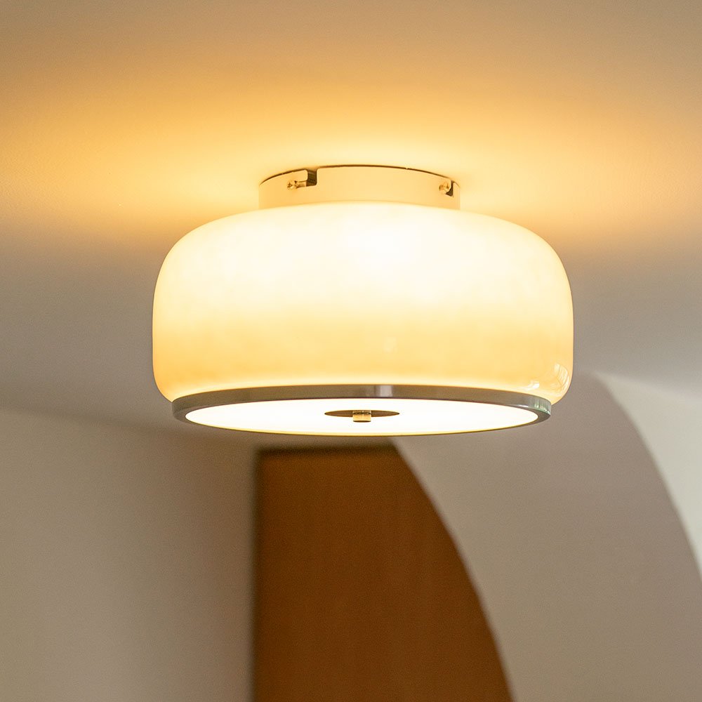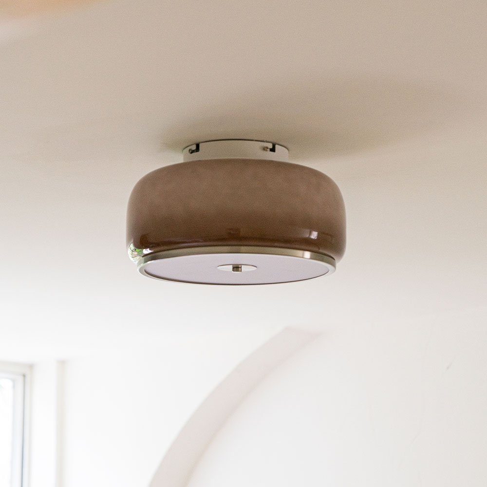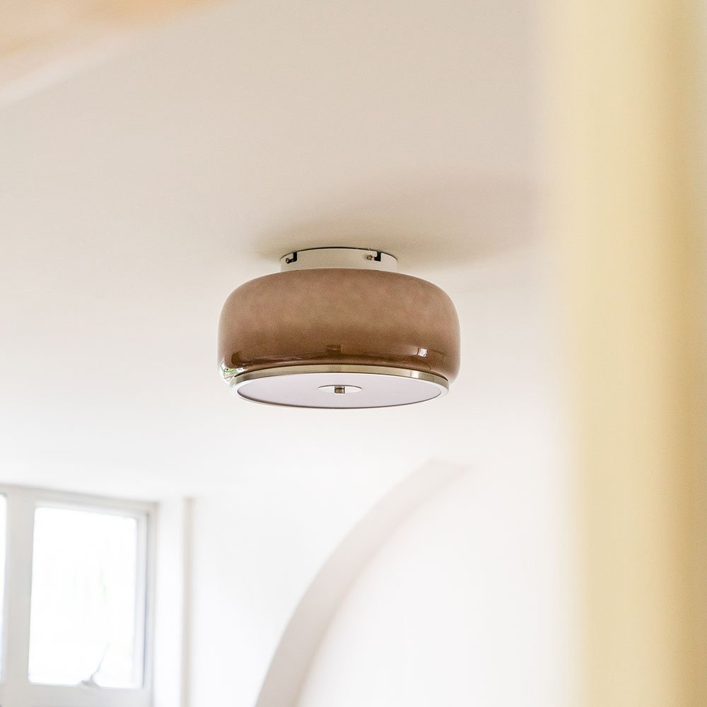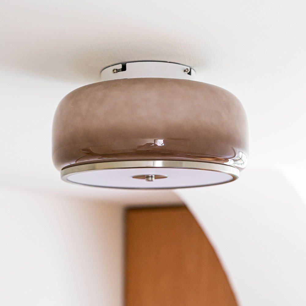 This ceiling light is a perfect blend of style and functionality. Its rounded, earth – toned glass shade exudes a warm and cozy vibe. The sleek metal trim adds a modern touch. Ideal for any room, it lights up your space with elegance.